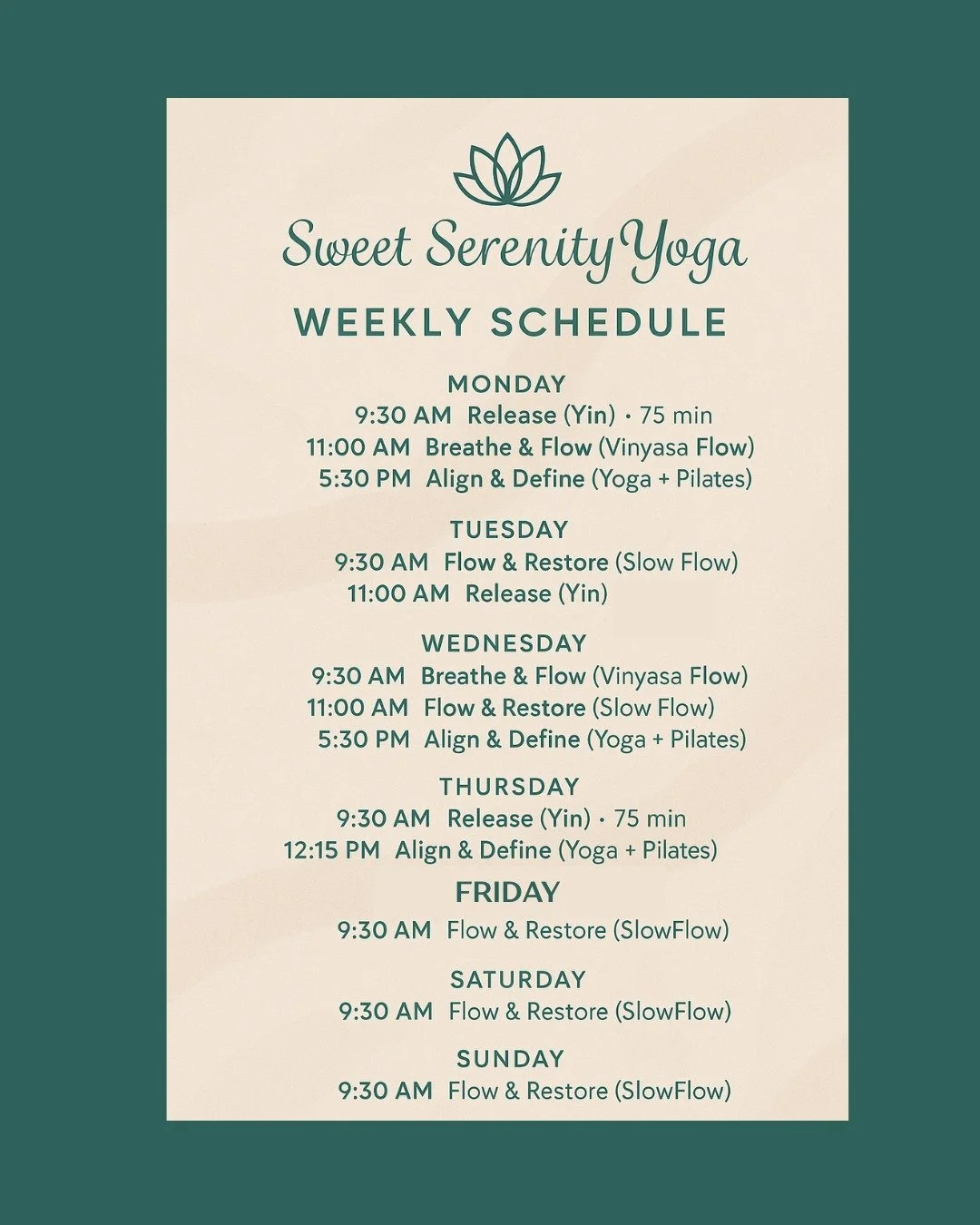 Upcoming Events at Sweet Serenity Yoga